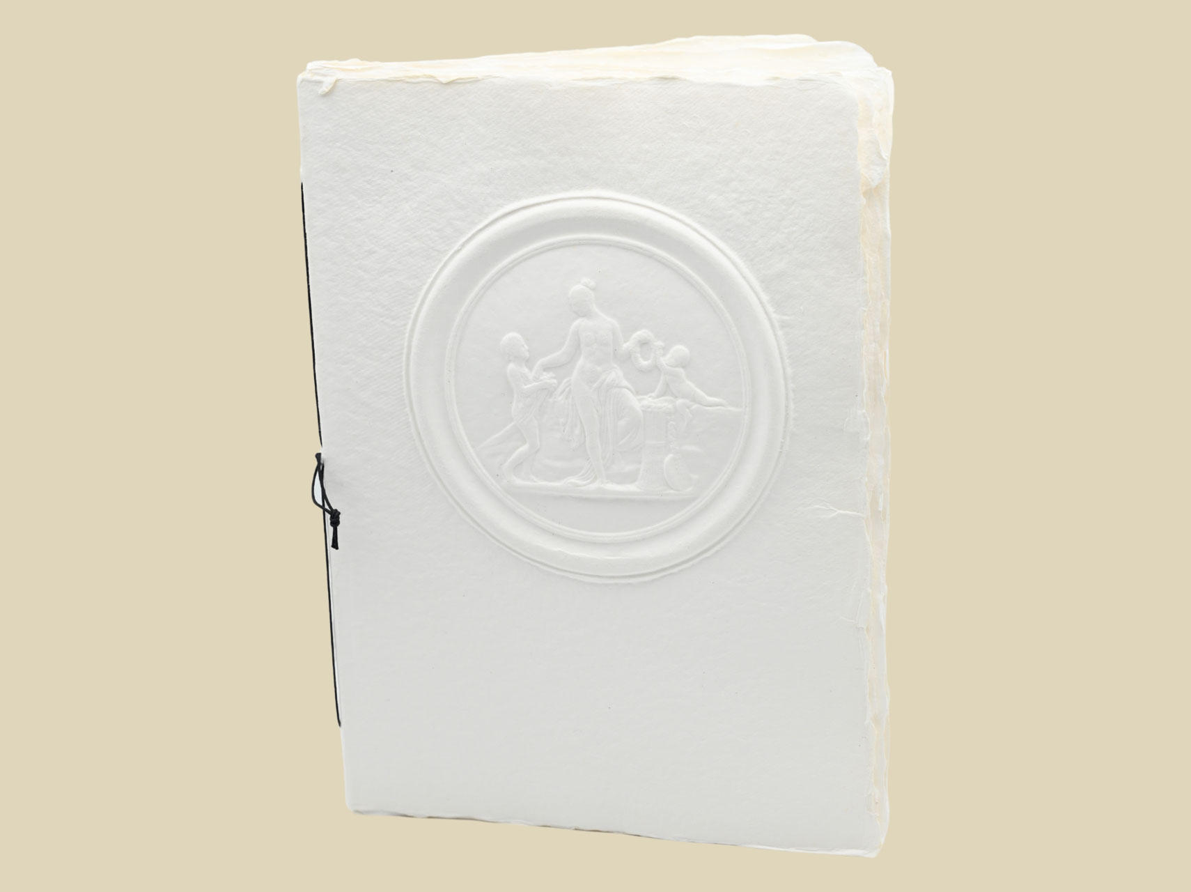 Notebook cm. 25x35 in handmade paper with an image taken from works by the old Italian masters imprinted in high relief. Each notebook is a unique work, consisting of 10 pages in pure cotton of great thickness. Suitable as a book for signatures, guests for a special reception, watercolor drawing and much more ...