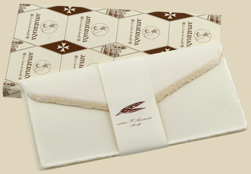 Confezione da 10 cartoncini e 10 buste 11x22. Sul cartoncino è impressa la filigrana della cartiera.