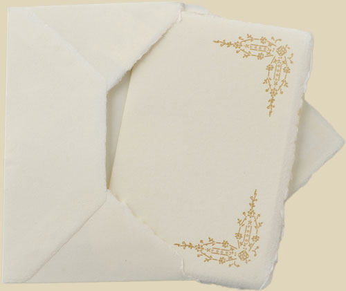Set of 5 note cards and 5 14x9cm envelopes with Leaves and Flowers fretwork pattern. The carving is carried out using a fretwork method carried out by laser on the edges of the paper. This method has allowed us to create a "lace" on the traditional Amalfi paper. The paper is ivory coloured.