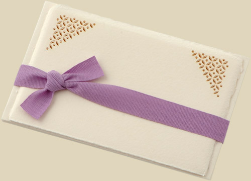 Set of 5 single note cards and 5 14x9cm envelopes with Grains fretwork pattern. The carving is carried out using a fretwork method carried out by laser on the edges of the paper. This method has allowed us to create a "lace" on the traditional Amalfi paper. The paper is ivory coloured.