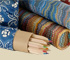 Cardboard tube in marbled paper of 12 coloured pencils.